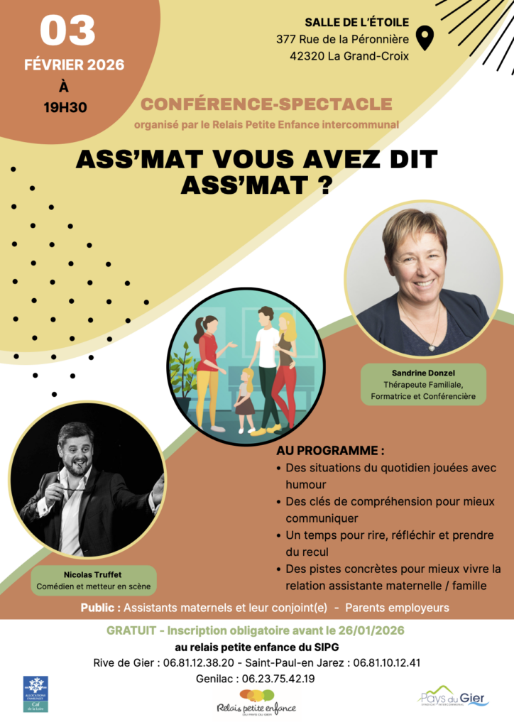 Conférence spectacle « Ass mat, vous avez dit ass mat ? les tribulations d’une assistante maternelle et de son parent employeur – La Grand Croix