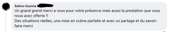 « Merci pour votre superbe intervention. c’était très intéressant et je me suis régalée ! »