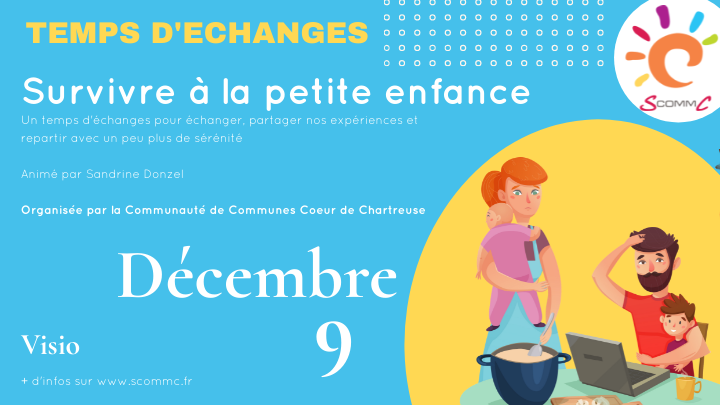 C’est pour ça que la communauté de communes Cœur de Chartreuse m’a proposé d’animer en juin une conférence “Survivre à la petite enfance” … et maintenant ce temps d’échanges en visio, pour échanger de façon informelle sur nos vécus, partager nos expériences